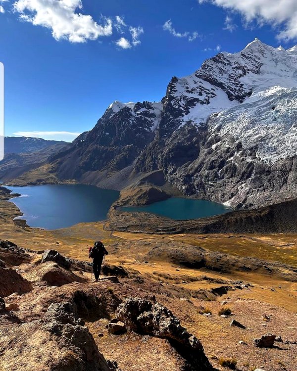 Durante el recorrido estarás rodeado de montañas, con vistas cercanas del Apu Ausangate, considerado sagrado por las comunidades locales. Al finalizar la caminata, tendrás la oportunidad de relajarte en aguas termales naturales mientras disfrutas de un espectacular panorama andino.