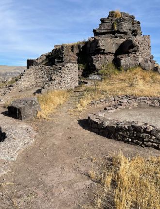 Después del desayuno continuaremos en transporte hacia Santa Lucía, donde tomaremos un desvío por una carretera zigzagueante durante unos 15 minutos hasta llegar al punto de inicio de nuestra caminata. Luego de una breve explicación por parte de nuestro guía, comenzaremos el ascenso hacia Waqra Pukara, en una caminata de aproximadamente 1 hora y 30 minutos.